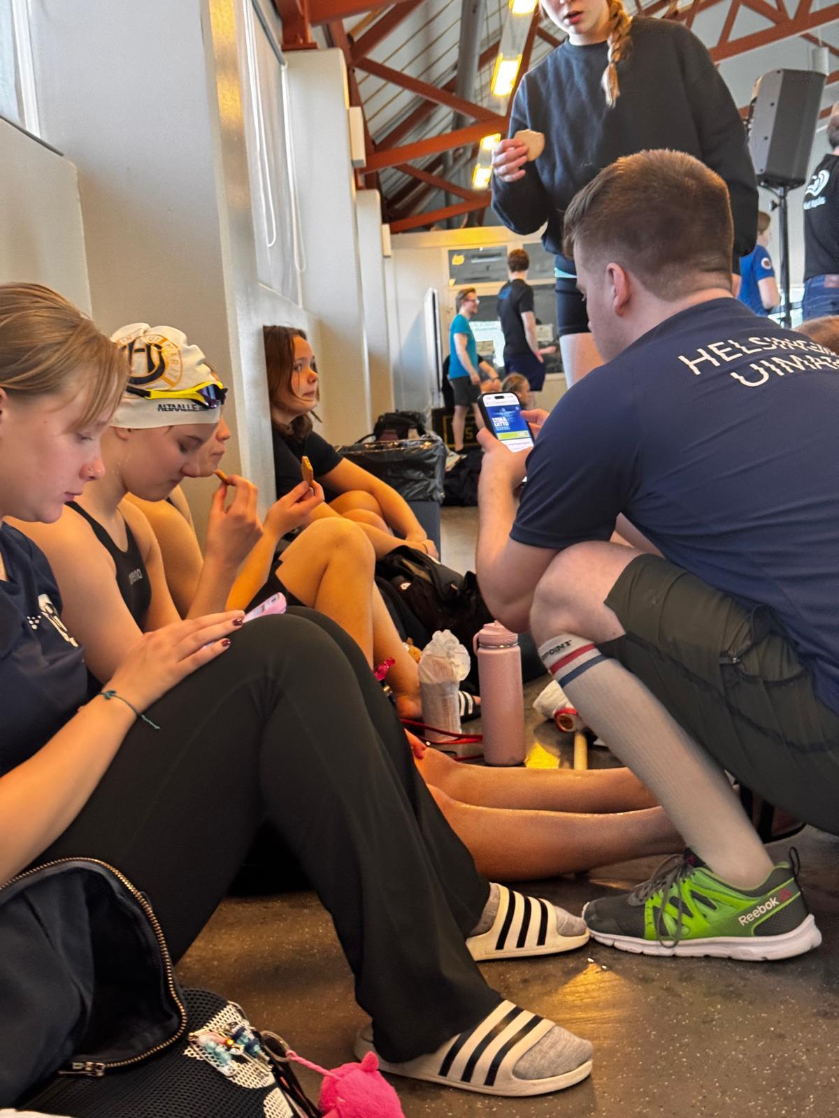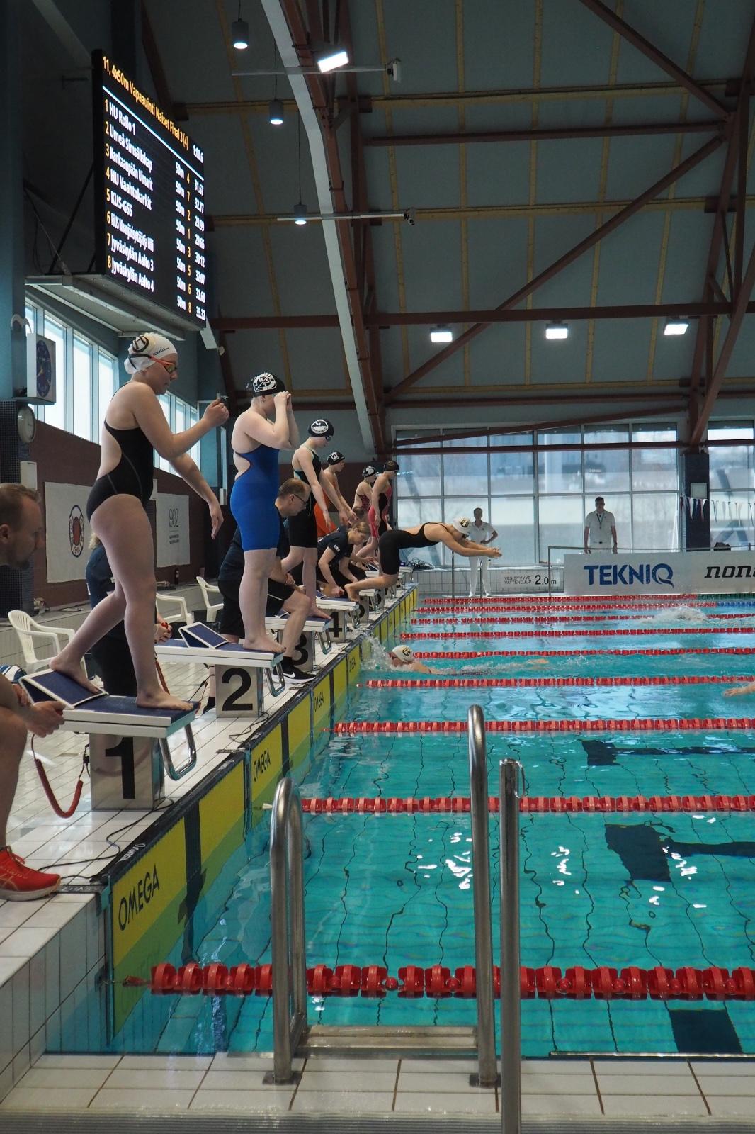 Erityisesti viestiuinneissa olimme sekä lauantaina että sunnuntaina liekeissä. Uimarit kellottivat hurjia osuusaikoja, ja tunnelma hallissa oli hieno. Joukkueet kannustivat omiaan, ja koko muu joukkue piti ääntä katsomossa. Oli ilo nähdä myös nuorimpien uimareiden elävän täysillä mukana ja kannustavan äänekkäästi kavereitaan.